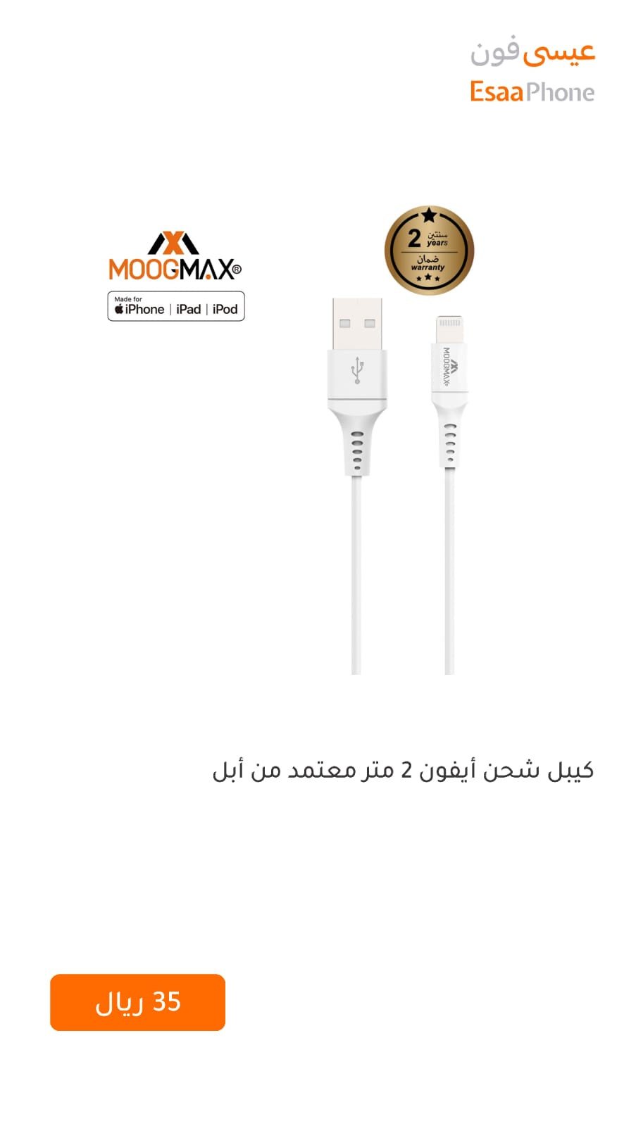 كيبل شاحن ايفون اصلي
